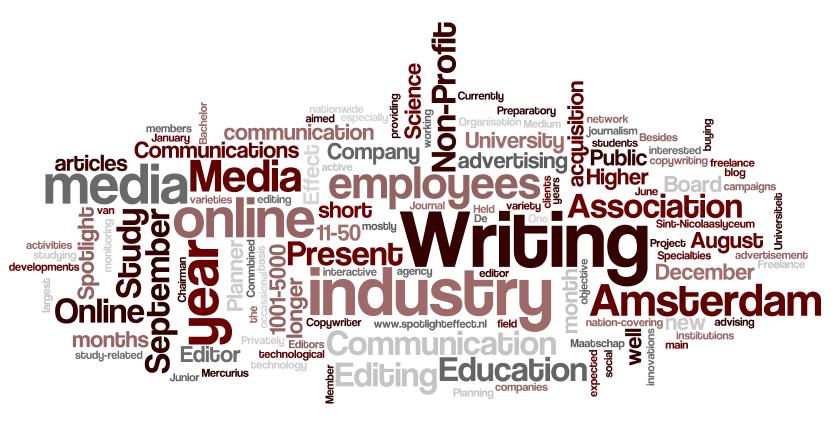 Heb je binnenkort een belangrijke sollicitatie en wil je daarbij op een originele en opvallende manier naar voren komen? Geïnspireerd door collegabloggers Nigel James en Roo Reynolds besloot ik mijn CV in Wordle te gooien, een programma dat een tagcloud genereert op basis van een ingevoerde tekst. Hieronder het resultaat, de bron is mijn openbare LinkedIn profiel. Het ziet er prachtig uit en de uitdraai valt eenvoudig te bewerken (ander kleurenschema, horizontaal/verticaal).