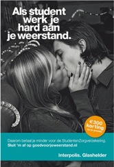 Goed voor je weerstand, een uitspraak die menig student niet vreemd in de oren klinkt als het schoonmaken weer eens bijzaak is of door geldgebrek de houdbaarheidsdatum niet al te nauw wordt genomen. Die weerstand gaat in ieder geval alle kanten op. Hoe wankel de weerstand van menig student ook is, Interpolis denkt door het te verzekeren er zowaar geld mee te kunnen verdienen. Door in te zetten op wat goed voor je weerstand is, of eigenlijk ook niet, gaat de verzekeraar los via de goedkopere reclamemiddelen. Dus geen dure commercials op televisie maar billboards, print en, jawel, een viral. Bij een viral hoort YouTube, en daar zijn een paar grappige filmpjes te zien uit het leven van een student, waarbij het kotsende meisje op het toilet in een paar dagen al veel bezoekers trekt. Het filmpje lijkt rechtstreeks van een mobiele telefoon af te komen die in de kroeg een scene filmt van een meisje dat na het toiletbezoek vol op de mond wordt gezoend door een jongeman met iets teveel bier op.