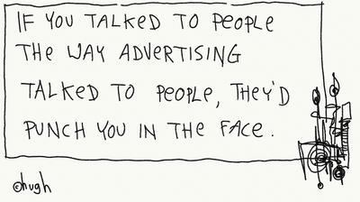 Enerzijds zeuren we over dat adverteerders alleen maar schreeuwen en niet persoonlijk zijn, zoals Hugh en Ernst, maar natuurlijk ook de mensen achter het bekende Consumer vs. Advertiser filmpje.