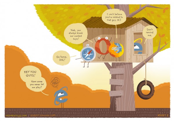 We hebben al eerder over Internet Explorer (6) geklaagd, en ondanks dat we inmiddels bij een vrij stabiele versie 7 zijn krijg ik nog steeds de kriebels als ik ermee moet werken. Dus toen ik deze cartoon tegenkwam op The Next Web verscheen er wederom een glimlach op mijn mond. Surf naar Momentile met IE6 en je krijgt dit te zien: (klik voor een vergroting)