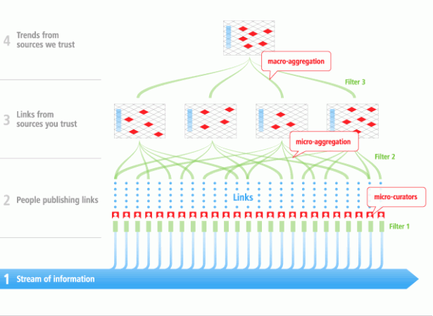 Een infrastructuur om micro curation op toe te passen bestaat dus al, maar hoe maakt je dit geschikt voor het filteren van informatie?