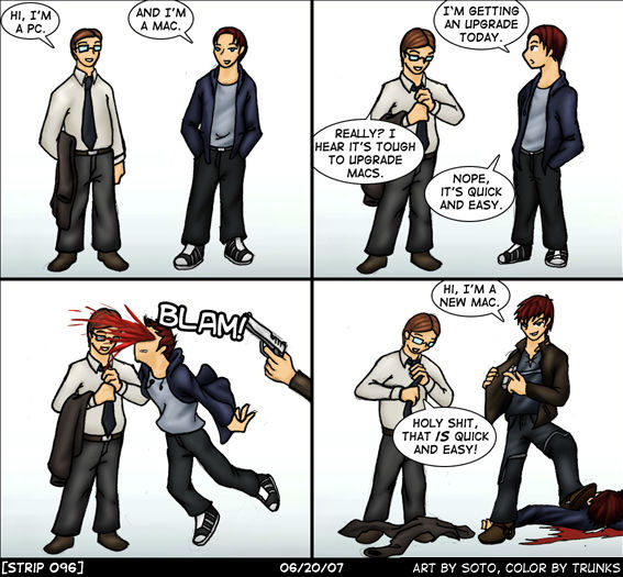 by Jerry HoutmanDit is niet de eerste keer dat de eeuwige strijd tussen Mac- en PC-gebruikers op Spotlight Effect aan bod komt. Evenmin geldt dit voor de parodieën die erop gemaakt zijn: beter goed gejat dan slecht gedaan. Vaak zijn PC-adepten het mikpunt van spot, ditmaal gaat het over het gemak waarmee je een Mac upgrade. Al weet ik niet wie hier nu beter uit is: Mac of PC?